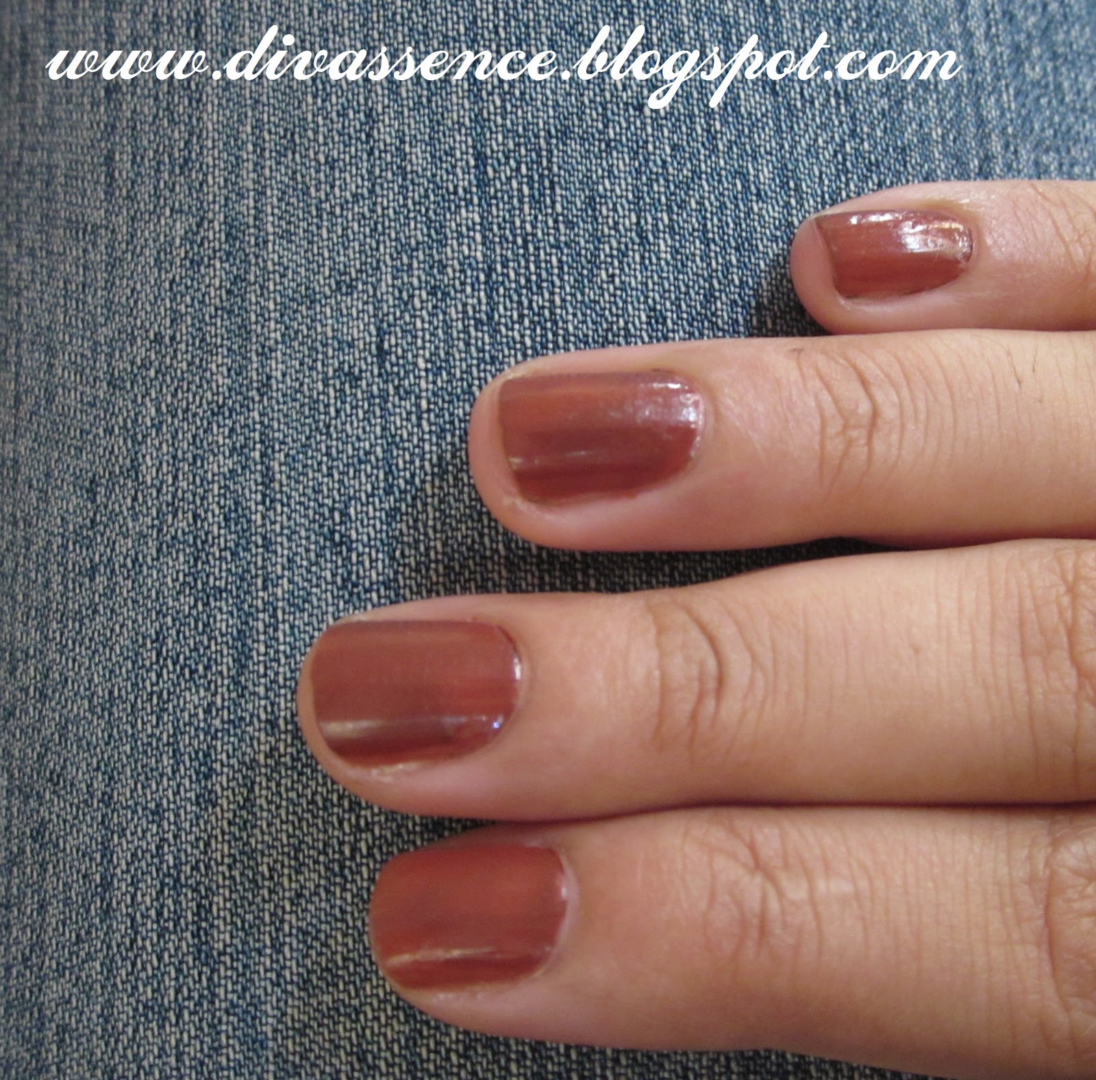 Avon NailWear Pro Enamel in Cream Latte is a chocolate brown colour. One coat of it would remind you of milk chocolate and two coats of it, dark chocolate. Yum!!